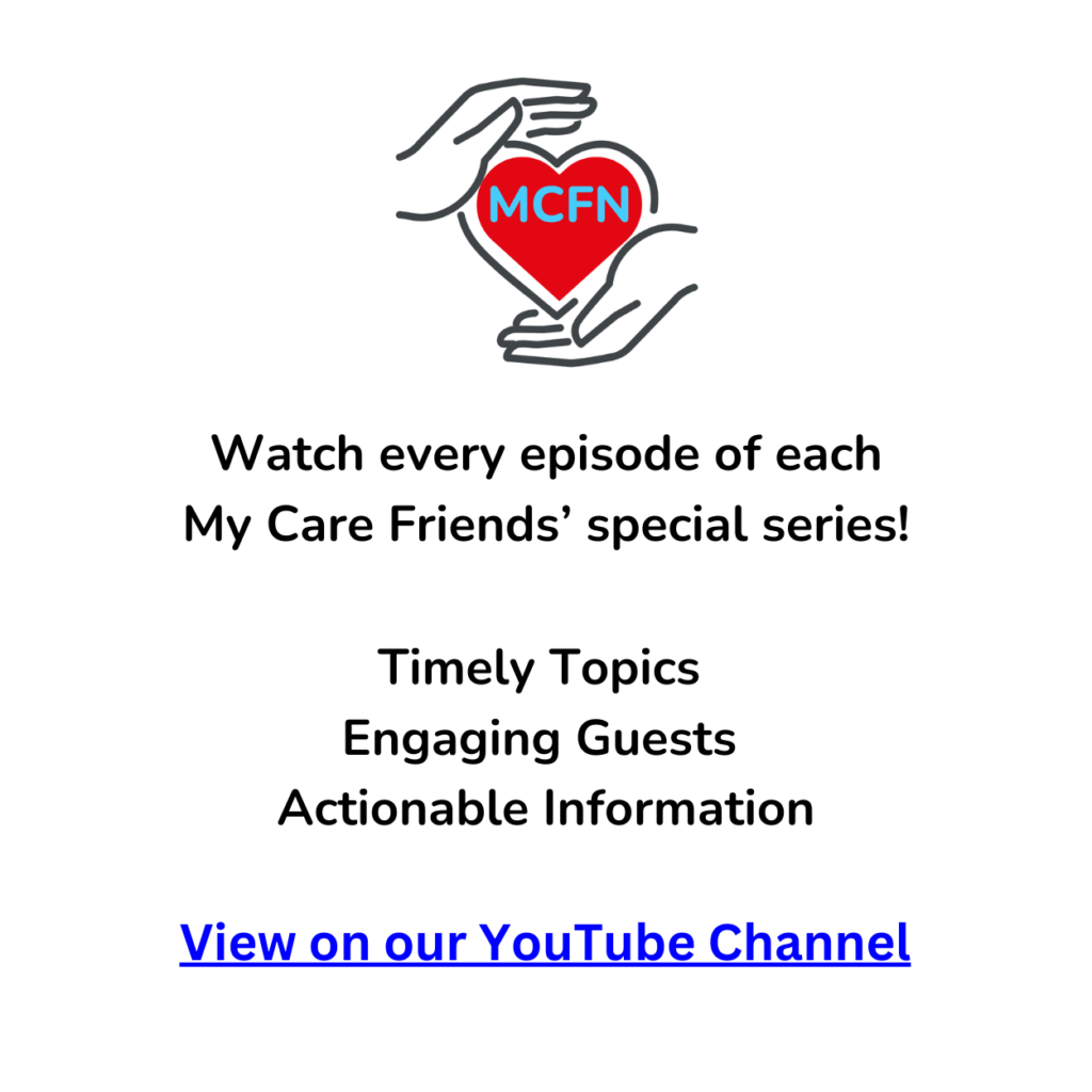 The list below is provided for information purposes only, without specific endorsement of any event. My Care Friends LLC makes no representation of any entity, individual or topics involved in the events. Attendance at these events is at your own discretion. All events are virtual and based on Eastern Time, unless otherwise noted.
